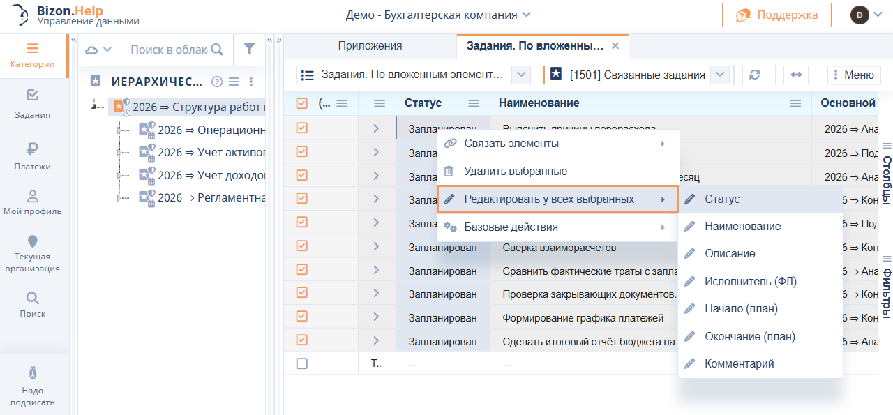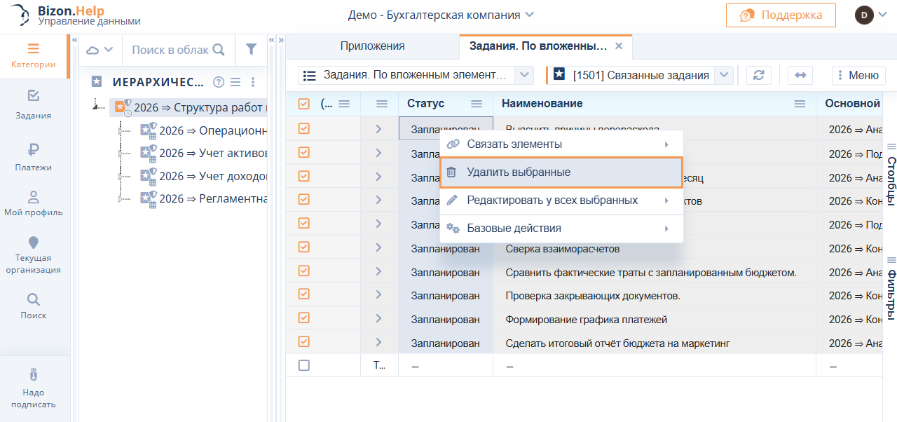 Добавлен функционал массового удаления и редактирования заданий, исправлены ошибки в приложении «Подписи»