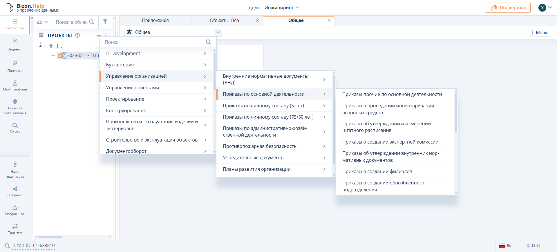 - Второй уровень для приложения с Комплектами ИРД – «Исходно-разрешительная документация»;